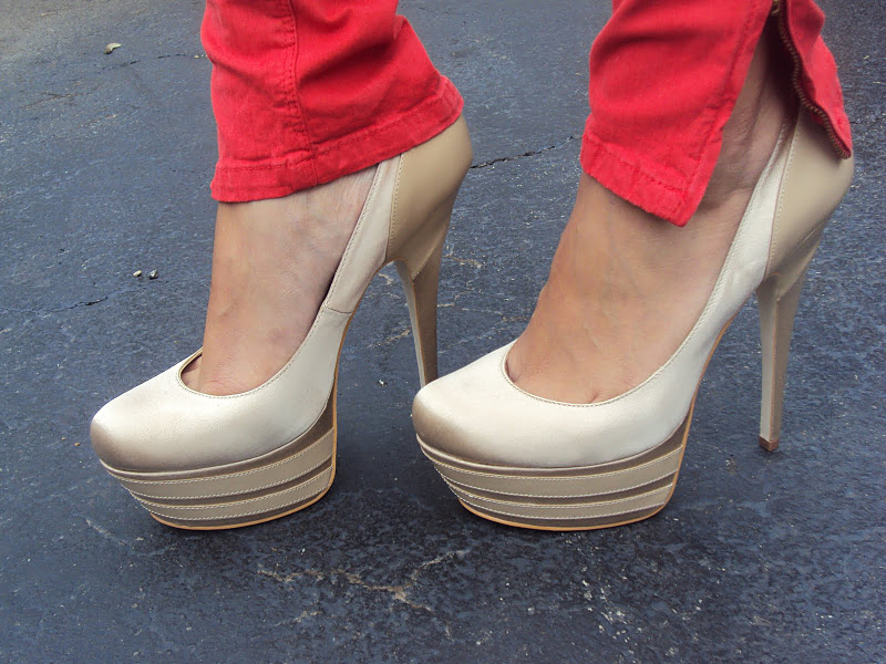 These are pictures of of four beautiful bloggers Cindy, Henar, Hilda, & Karla all wearing sexy pairs of heels. The first picture is of Cindy from "Glamour Bbey." She is wearing a pair of skinny jeans, and a pair of Black Platform Booties both from H&M. The second picture is of Henar from "Oh My Vogue." She is wearing a pair of grey jeans with a zipper, and a pair of Black Patent Christian Louboutin 'Lady Peep' Peep-Toe Platform Pumps. The next two pictures are of Hilda from "Style with Hilda." She is wearing a purple top and a pair of red skinny jeans both from Zara. She is carrying an orange handbag from ALDO, and wearing a pair of Nude Satin Bebe Platform Pumps. The last picture is of Karla from "Karla's Closet." She is wearing a pair of skinny jeans, and a pair of Black Patent Christian Louboutin 'Pigalle' Pumps. I think that all four of these ladies have incredible style and look absolutely stunning in these pictures. I want to thank them all for these amazing pictures, and I hope that all of you like them, and enjoy this post.